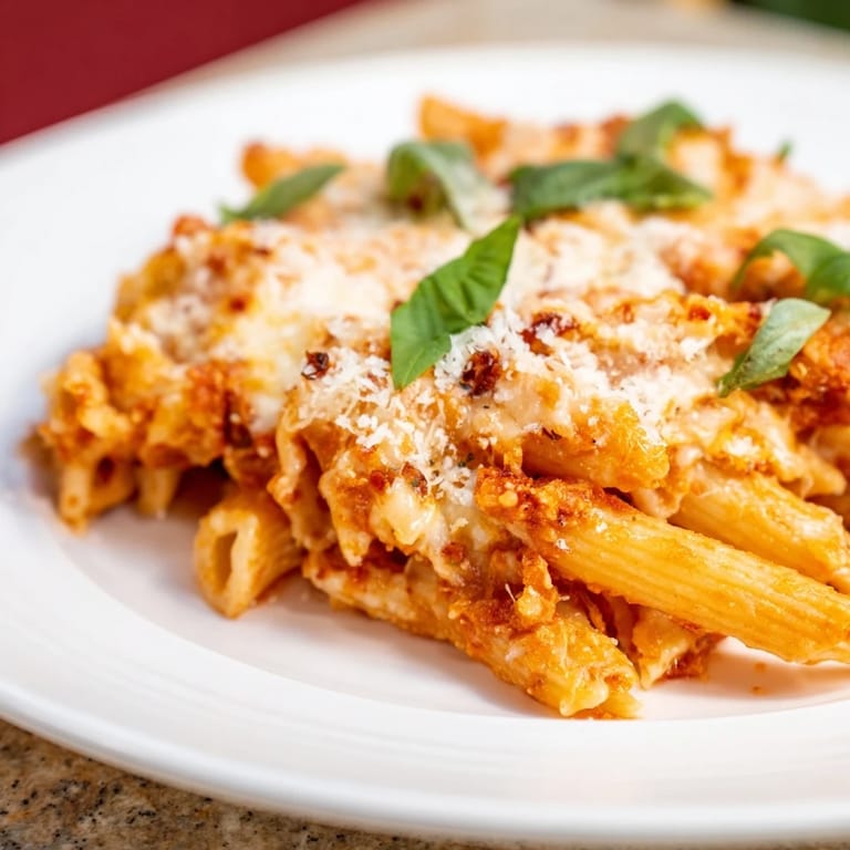 Save There's something about the smell of garlic hitting hot olive oil that transports me instantly to my cousin's kitchen in Rome, where she'd throw together this baked penne arrabbiata on lazy Sunday afternoons. One particular visit, I watched her shake the red pepper flakes straight into the pan with this confident flick of her wrist, and the heat that rose up made us both laugh and step back. That memory stuck with me—the casualness, the fire, the way she'd layer it all into a dish and let the oven do the work. Now when I make it, I'm not just cooking; I'm recreating that moment of controlled chaos that somehow always turns out golden and perfect.