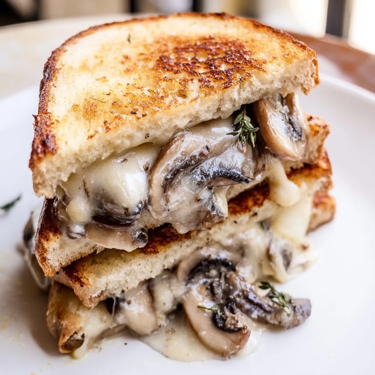 Save There's something about a grilled cheese that stops time. One cold Tuesday, I was standing in my kitchen with leftover cremini mushrooms and a craving for something more than the usual butter-and-cheese routine. That's when I started slicing those mushrooms thin, watching them soften and collapse into golden rounds in a hot skillet. The garlic and thyme came next, almost on impulse, and then the cream pooled in like silk. When I pressed that first sandwich onto the griddle, the smell alone told me I'd stumbled onto something worth repeating.