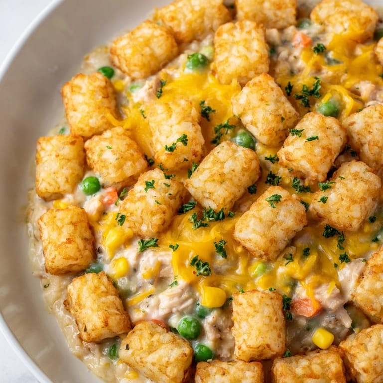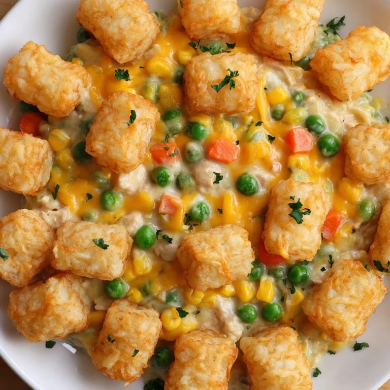 This casserole is a blank canvas, honestly. I've crumbled crispy bacon between the chicken mixture and the tater tots, added a handful of frozen broccoli when we needed more vegetables, even stirred in some hot sauce to the filling on nights when we wanted a kick. One winter I used cream of mushroom soup instead of chicken, and it turned into something earthier and completely different but equally good. The structure stays the same, which means you can play around without worrying you'll mess it up.