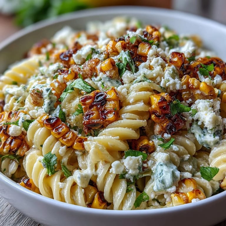 Save My neighbor Maria showed up at a summer cookout with this elote pasta salad, and I watched people gravitate toward it like it was the only dish on the table. The combination of charred corn, bright lime, and that salty crumble of Cotija felt both unexpected and completely right. I finally asked for the recipe, and she laughed, saying it was her own riff on elote street corn, adapted for a potluck crowd. Now whenever I make it, I think of her kitchen on a sweltering afternoon, explaining how the dry-pan charring trick transforms ordinary corn into something with actual personality.