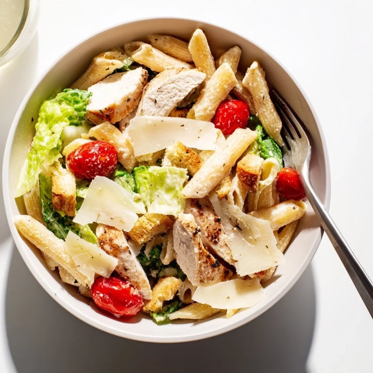 Save My neighbor Sara brought this over on a Wednesday night when I was too tired to think about dinner. One bite and I understood why she'd been raving about her "fancy comfort food" for weeks. The creamy Caesar clung to every twist of pasta, the chicken had just enough kick to wake up my taste buds, and the cool romaine added a crunch I didn't know I needed. I texted her for the recipe before I even finished my bowl.