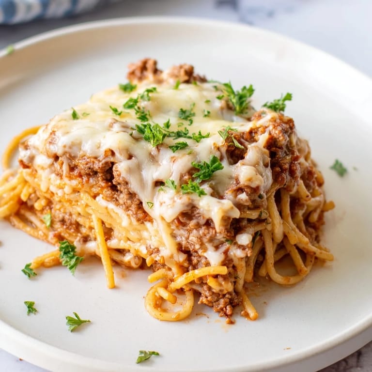 Save I stumbled onto this dish one Sunday when I had leftover spaghetti and a craving for something richer than reheated pasta. Mixing a creamy cheese sauce into the noodles felt risky, but the first forkful out of the oven proved it was the best kitchen gamble I'd taken in months. My neighbor knocked on the door halfway through dinner because the smell had drifted across the hall. Now it's the recipe I make when I want everyone to stop scrolling their phones and actually sit at the table.